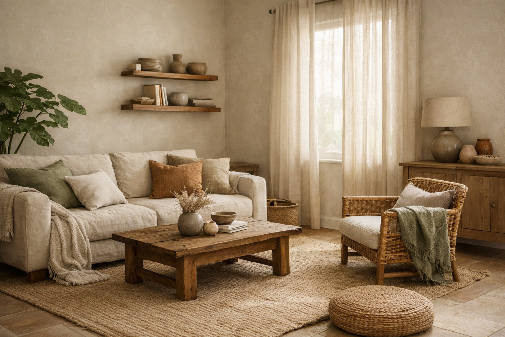 Nature inspired interiors are built slowly. They come together through materials, colours, textures, and thoughtful choices rather than quick fixes. When natural furniture, organic textiles, plants, and simple decor accents work together, the space feels balanced.